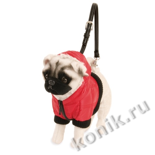 Декоративная сумочка в виде смешного и очень милого мопса в красной курточке – замечательная детская игрушка и яркий, оригинальный аксессуар маленькой модницы.